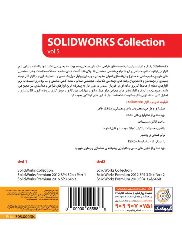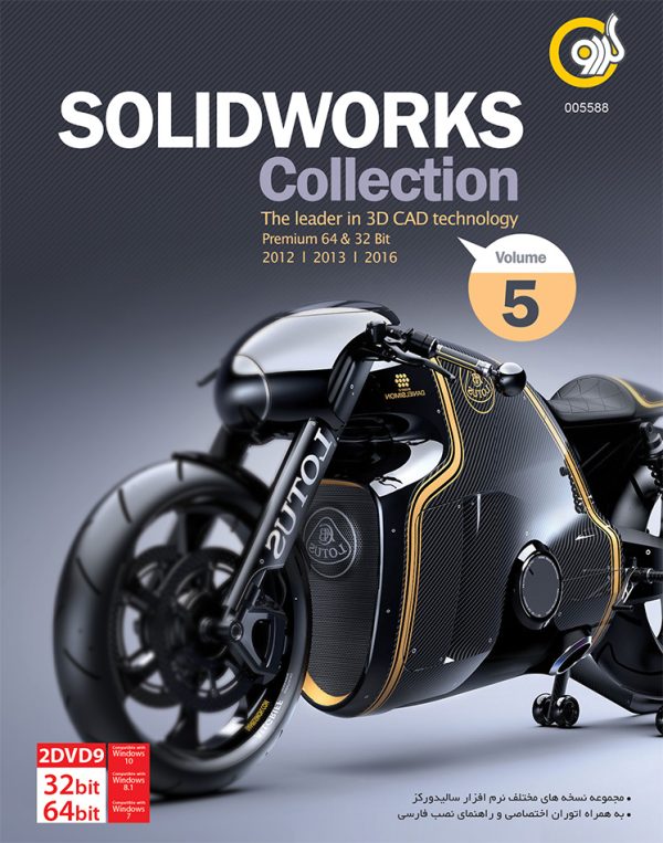 مجموعه نرمافزار SolidWorks Collection Vol.5 گردو شامل سه نسخهی 2012 32گیگابایتی، 2013 32 و 64گیگابایتی و نسخهی 2016 64گیگابایتی از نرمافزار SolidWorks است که در قالب دو حلقه DVD9 در اختیار شما قرار میگیرد.